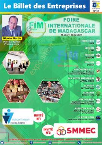 Grand angle – Foire Internationale de l’Agriculture (FIA), 7ᵉ éditionN° 46Mars2026ITM : Salon International du tourisme & artisanatN° 45AoûtSeptOct2025FIM : Foire Internationale de MadagascarN° 44MaiJuinJuillet2024Salon du loisirN° 43AvrilMai2025Salon de l’auto 2024N° 42NovDéc2024Foire Internationale de l’agricultureN° 41SeptOct2024FIM : Foire Internationale de MadagascarN° 40JuinJuilletAoûtSept2024Salon International du Transport, de la Logistique et de la ManutentionN° 39AvrilMai2024Le Chocolat à MadagascarN° 38JanvFévMars2024Salon International de l’HabitatN° 37NovDéc2023Foire Internationale de l’agricultureN° 36SeptOct2023FIM : Foire Internationale de MadagascarN° 35AvrilMai2023La grande distribution à MadagascarN° 34JanvFévMars2023Le salon de l’HabitatN° 33NovDéc2022Salon de l’agricultureN° 32SeptOct2022L’immobilierN° 31JuinJuilletAoût2022FIM : Foire Internationale de MadagascarN° 30MarsAvrilMai2022BANQUES : banques & fonds d’investissementsN° 29JanvMars2022Salon International de l’HabitatN° 28NovDec2021FIM : Foire Internationale de MadagascarN° 27OctNov2021Vins et vignoble MadagascarN° 26AoûtSept2021Vidéo et télésurveillance, gardiennage, dressage caninN° 25MaiJuinJuillet2021Centre d’appel, relation client, outsourcing, externalisationN° 24MarsAvril2021Foire 4M : les bonnes affaires – ReportageN° 23JanvFév2021Salon de l’Habitat : reportageN° 22MaiJuinJuill.2021Culture & EvènementielN° 21JuinAoûtSept2020Covid-19 : opération MizaraN° 20MarsAvrilMais2020Logistique – Transport – ManutentionN° 19FévMars2020Jouets & CadeauxN° 18NovDéc2019Beauté & Bien êtreN° 17OctNov2019Tourisme et loisirs à MadagascarN° 16JuinJuilletAôut2019Les études supérieures à MadagascarN° 15MarsAvrilMai2019Restaurant Rapide : Fast FoodN° 14DecJanvFevMars2019Voitures & 2 rouesN° 13OctDec2018Enseignement Français à MadagascarN° 12JuilletAoût2018Start UpN° 8OctNov2017